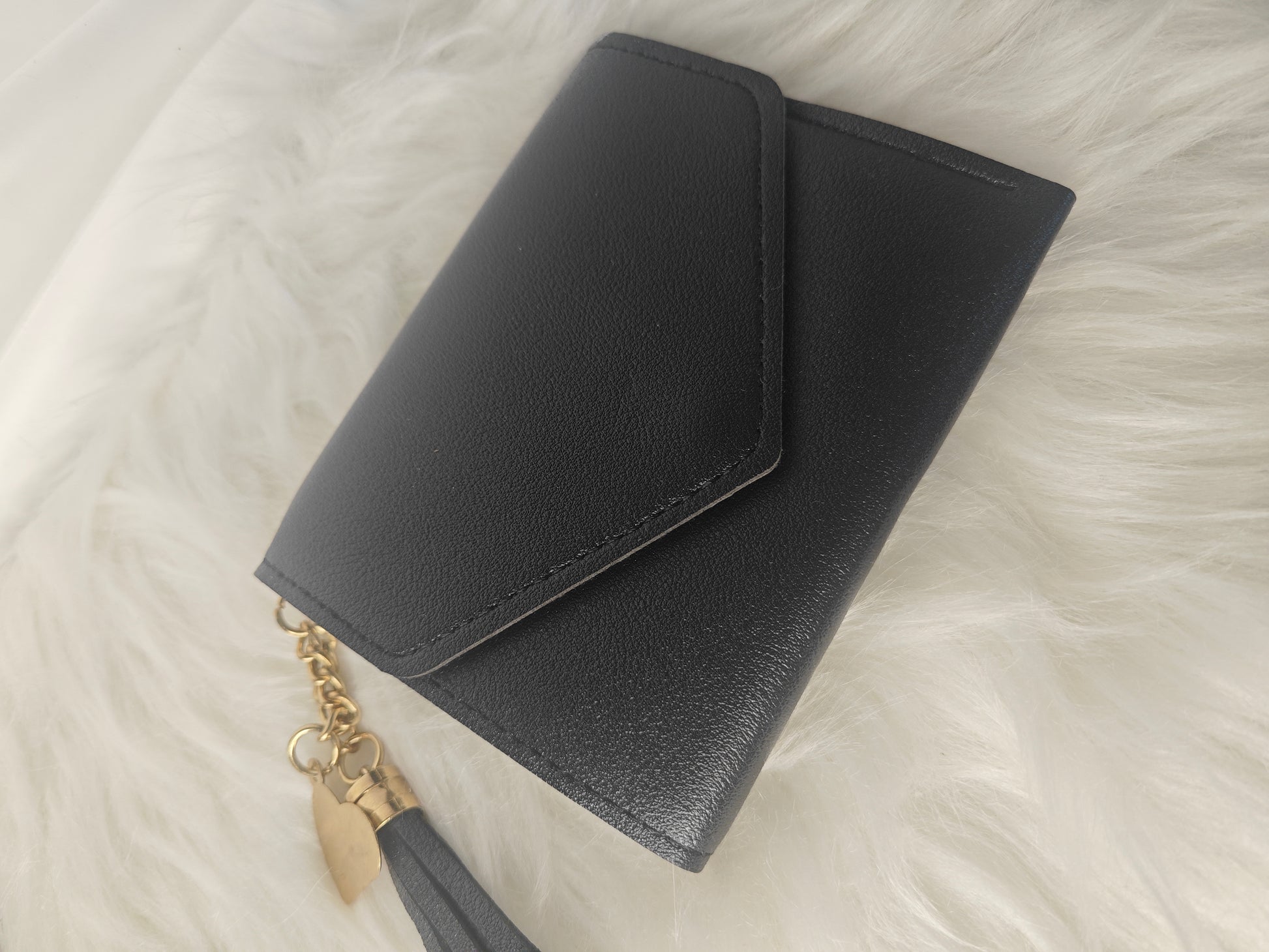 Midnight Charm – Kompaktes Portemonnaie in Schwarz mit Goldherz