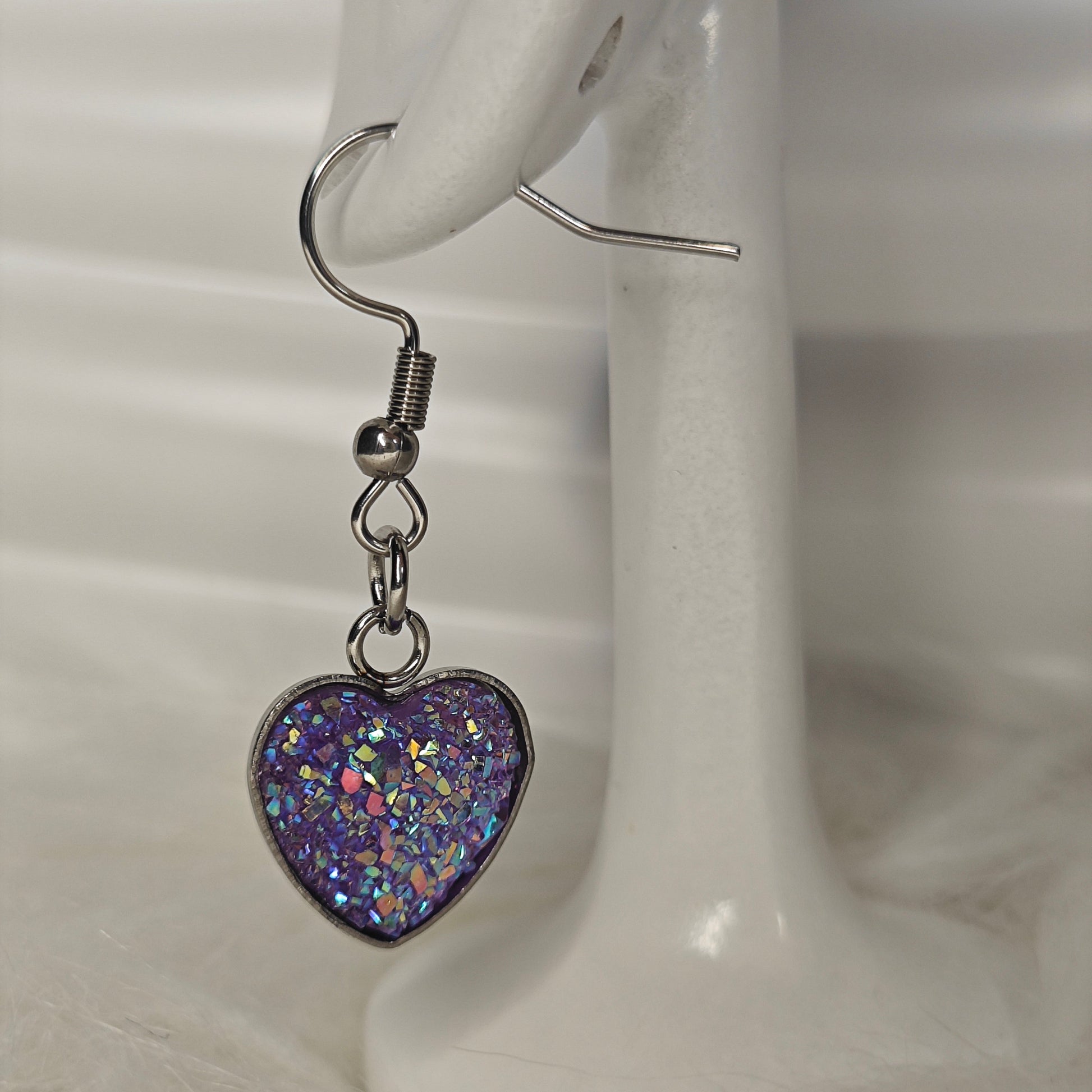 Cuore Stellato – Herz-Ohrringe mit violettem Starry-Sky-Effekt