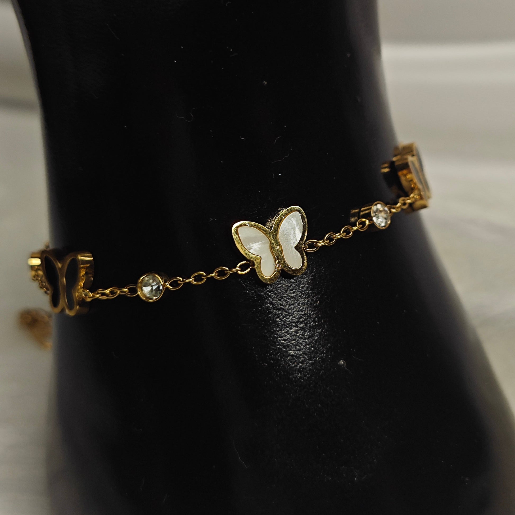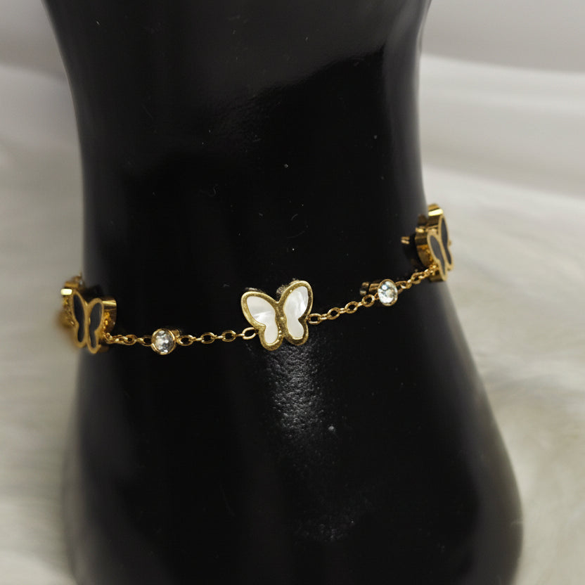 Farfallina Grace ist ein filigranes Armband, das die Schönheit des Schmetterlings mit feiner Eleganz verbindet. Die schimmernden Schmetterlingsmotive mit perlmuttartigem Inlay stehen für Wandel, Freiheit und sanfte Stärke – begleitet von kleinen funkelnden Kristallsteinen, die dem Design einen edlen Glow verleihen.