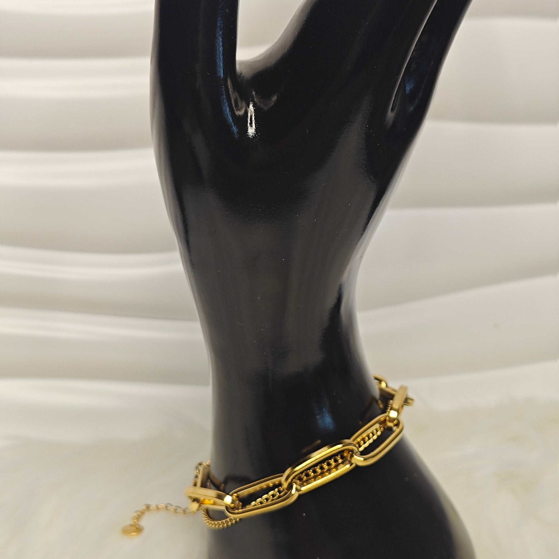 Das vergoldete Design wirkt hochwertig und ruhig zugleich. Die klaren Linien machen das Armband zum perfekten Begleiter – solo getragen als Statement oder kombiniert mit feinem Schmuck für einen modernen Layering-Look.