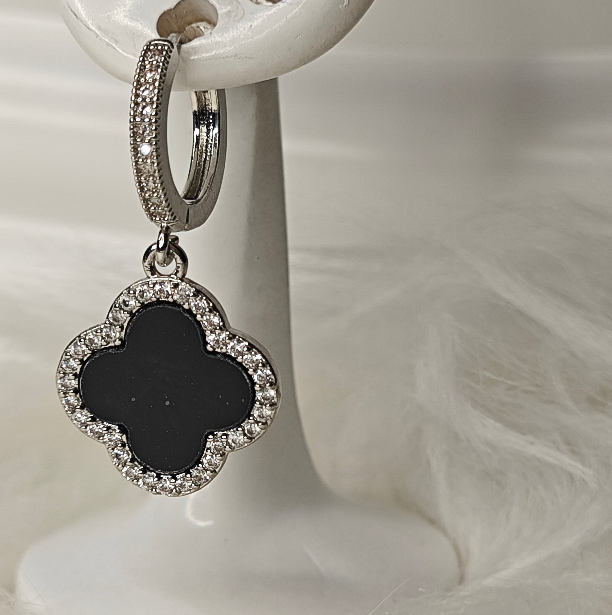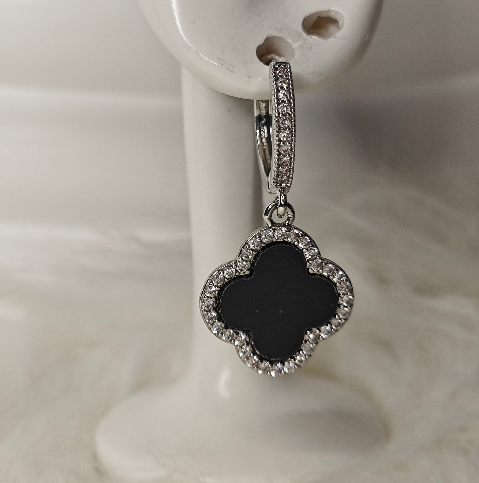 Noire Argent steht für eine moderne, klare Ästhetik mit luxuriöser Zurückhaltung. Das schwarze Kleeblatt-Inlay wird von einer fein schimmernden Fassung in Silberoptik umrahmt und verleiht den Ohrringen eine elegante Tiefe.
